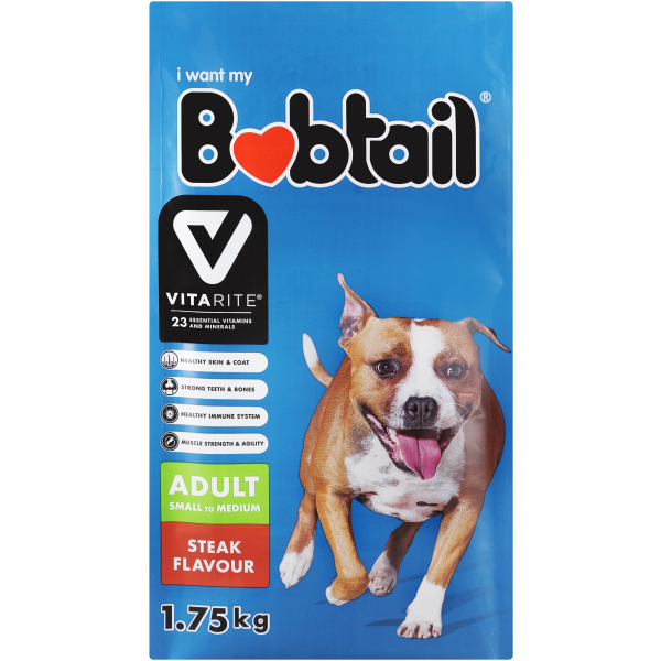BOBTAIL DOG FOOD SML MED MIN CHUNKS STEAK 1.75KG DRY FOOD
